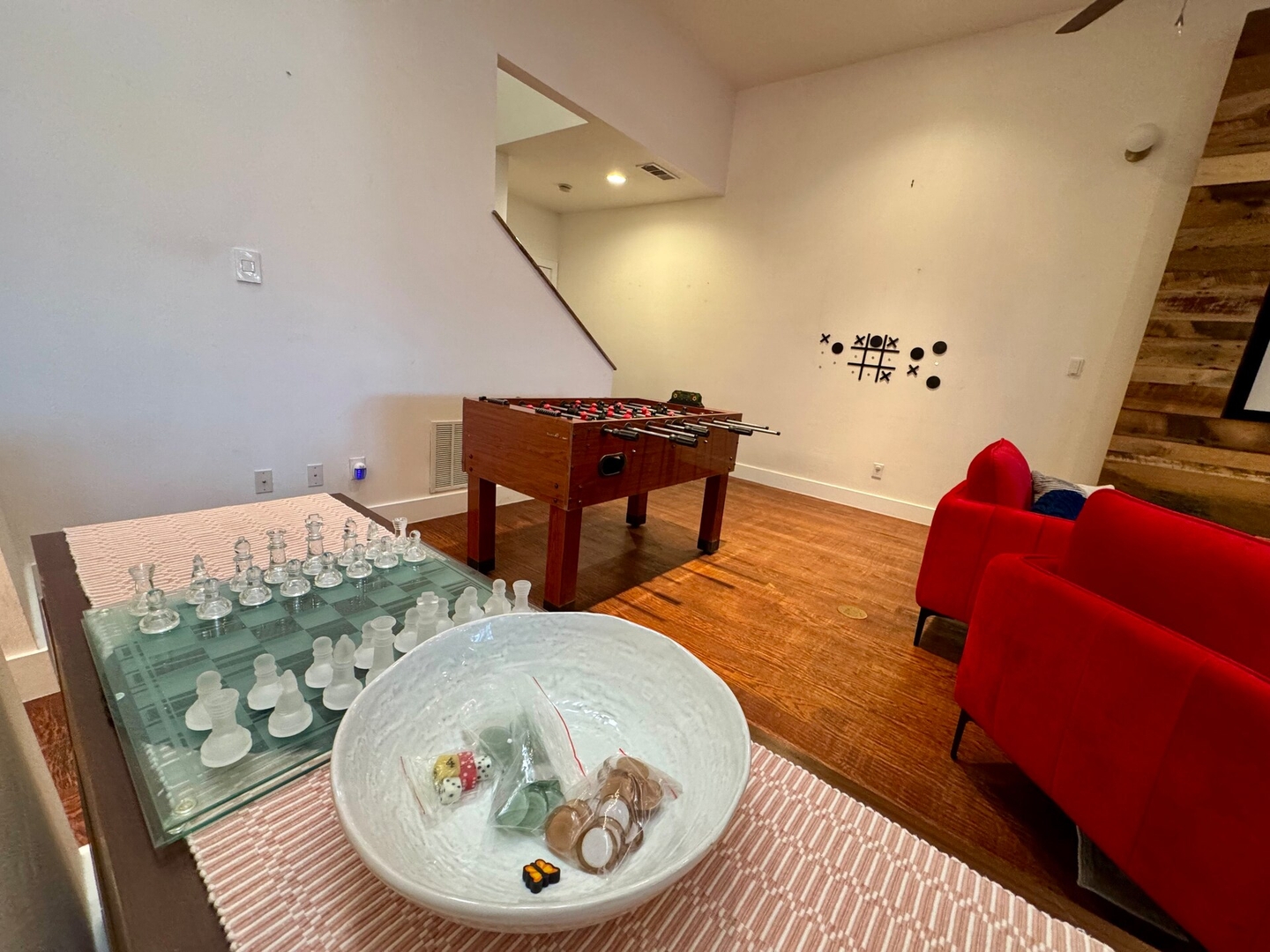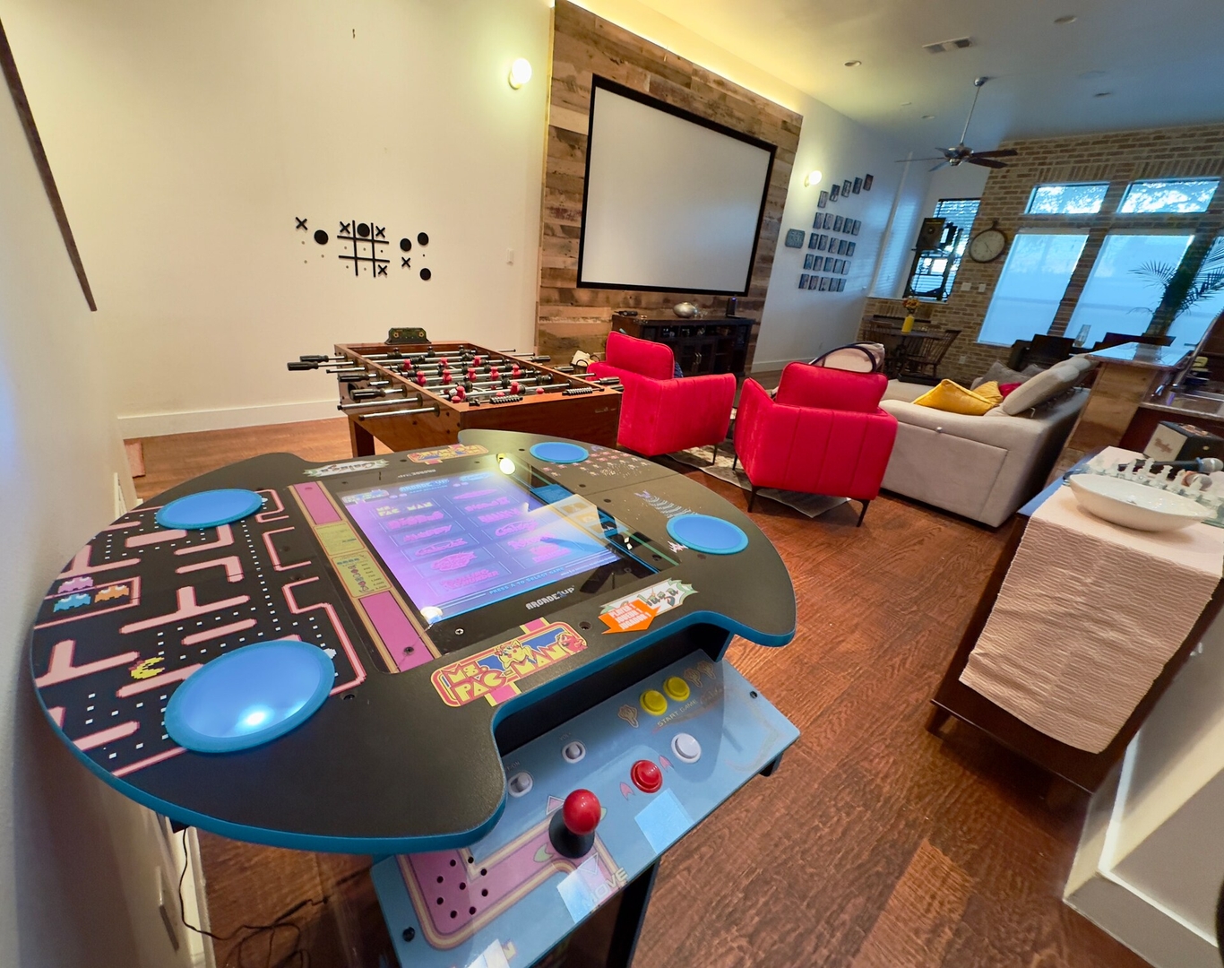 Find your spot on the cozy sofa and settle in with a movie, a game, or a glass of wine.